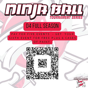 NINJABALL is the Northwest's Premier Tournament Series. We are located at Doodlebug Sportz Paintball Outdoor Park in Snohomish Washington. We offer a modified "Race to 2" 5 man paintball experience for Divisions 4 and 5. the rate of fire is capped at 10.5 bps. This is a tournament only event. The gates open at 5:30 am and the games begin at 7 am. We also offer a premium webcast with commentators.